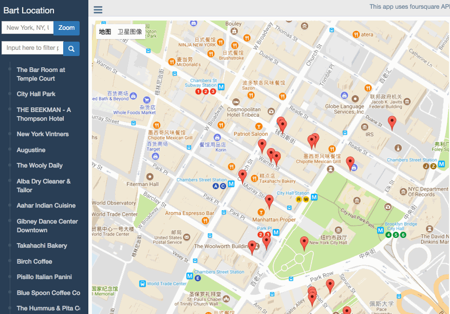 4 - 街区地图:学习框架与 API 的使用,开发一个单页应用,展示你所在街区或你想要参观的街区的地图,并向此应用添加更多功能。