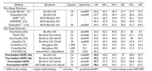同时我们选取了FreeAnchor为基础与当前SOTA检测器进行了比较。
