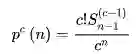 DiscretePlot[c!StirlingS2[n-1,c-1]/c^n/.c->12,{n,1,100}]