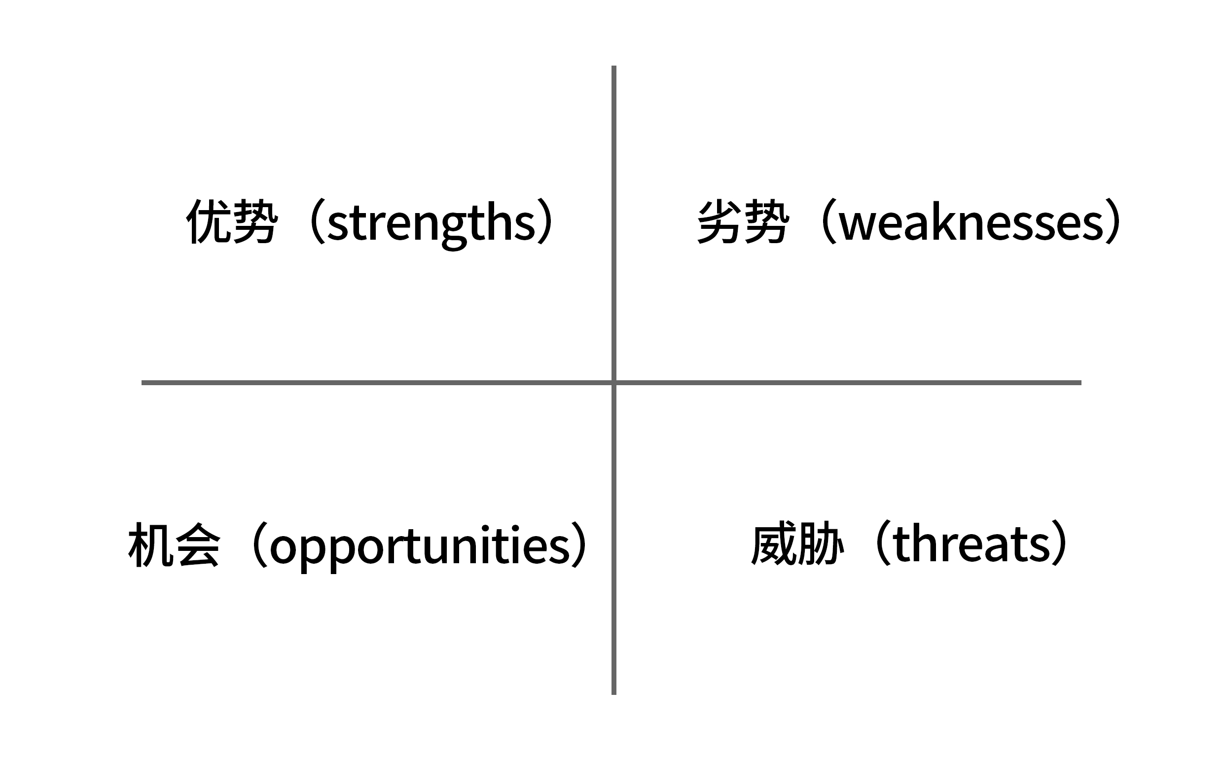 而下面的SWOT分析法则主要切入企业内部,分析自家企业内部状况,做到扬长避短。
