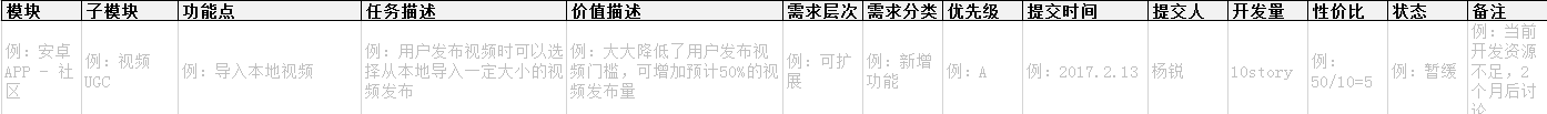 在被动接收需求的时候,也尽量让需求提出者描述需求;可能需求提出者在填写表格的时候,思考清楚了这个需求有没有存在的必要,这个方法能节约产品经理分析垃圾需求的时间。