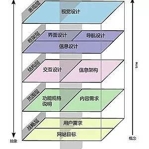 战略层 –> 范围层 –> 结构层 –> 框架层 –> 视觉层