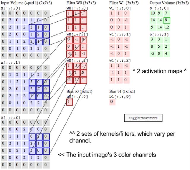 故而,卷积网络以矩形接收正常色彩的图像。这一矩形的宽度和高度由其像素点进行衡量,深度则包含三层,每层代表RGB中的一个字母。这些深度层被称为通道。
