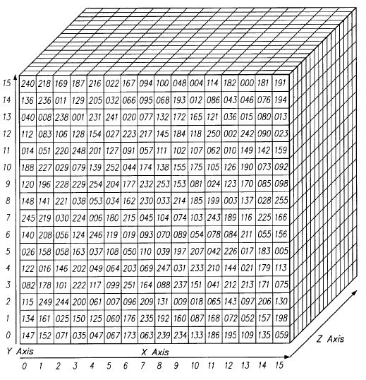 对图像的各像素来说,R、G、B的强度将会以数字进行表示。该数字将是三个堆叠二维矩阵之一的元素。图像体由这些二维矩阵一起构成。