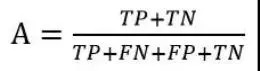 精确度,缩写表示用 A。精确度则是分类正确的样本数占样本总数的比例。Accuracy 反应了分类器对整个样本的判定能力(即能将正的判定为正的,负的判定为负的)。定义公式如下: