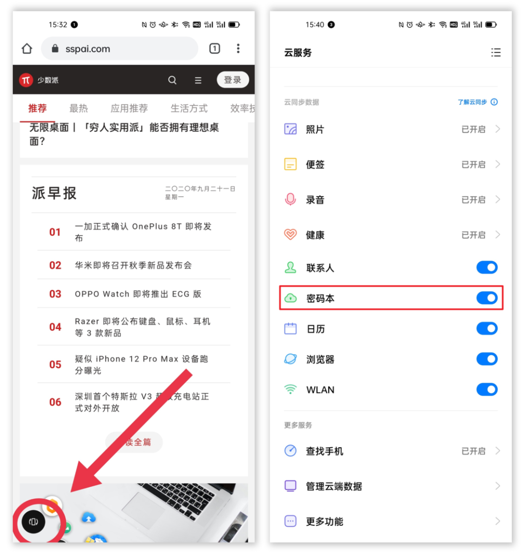 另外,从一些功能改进上我们也发现 ColorOS 团队一直有在倾听反馈,此前版本中缺失的基本功能不少都在 ColorOS 11 中回归,比如关闭自动旋转后的强制旋转屏幕方向按钮、自家自动填充工具「密码本」终于支持云端同步等等。
