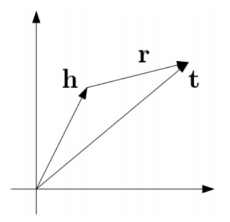 TransE 模型的基本思想就是把 relation 看做是 head 到 tail 的翻译,认为一个正确的知识三元组应该满足 h+ r =(约等于) t,而错误的不满足,通俗来讲就是头实体 embedding 加上关系 embedding 近似等于尾实体 embedding ,见下图,思想就是这么的简单但却高效。
