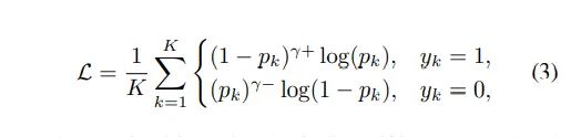 但由于Focal Loss是通过使用同一个参数gamma来调节学习权重,其形式会导致模型在降低简单负样本权重的时候,也会同样减少简单正样本的贡献,换句话说,Focal Loss的本质还是对难易样本的区别对待,对于正负样本不均衡问题并不是百分百适配。因此在ASL(Asymmetric Loss)工作中,对正负样本的权重调节参数gamma进行了解耦,在减弱负样本权重的同时,能保留正样本的贡献能力。