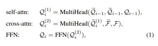 不同于大部分ViT-like模型使用Transformer编码器模块,本文使用的是解码器结构,每一层解码器模块中包含了一个自注意力模块,一个交叉注意力模块,和一个带位置编码的前馈网络。