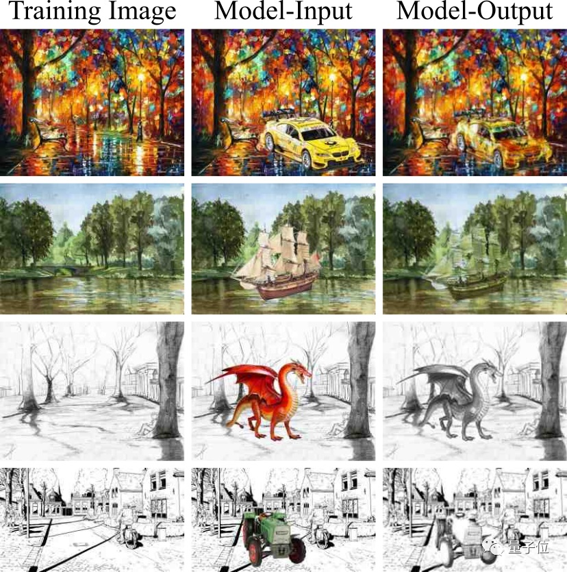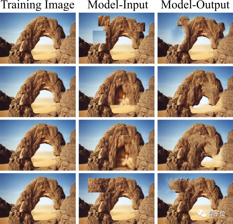 上图左侧是用来训练的单个图像,右侧是利用ConSinGAN训练后生成的复杂全局结构。