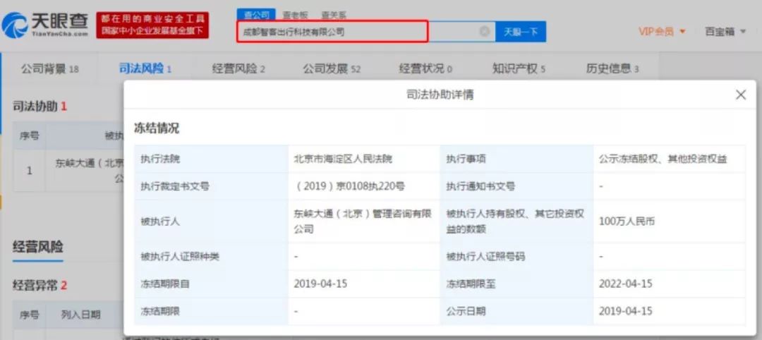 6.ofo旗下两家公司股权被冻结:共价值600万