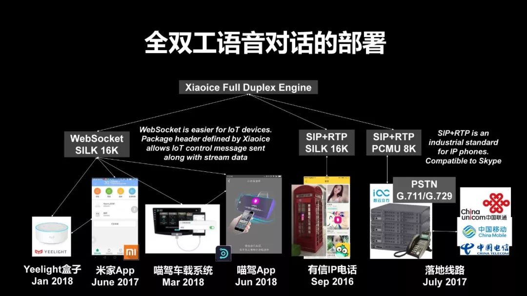 是这样的,在小冰绝大多数的实现中,我们使用的是RTP的数据压缩,RTP的数据压缩事实上是几乎所有的IP电话使用的一个标准,它最开始应该是Skype做出来并提倡的,所以大多数业界的IP电话其实都在使用这样的协议。所以如果说智能音箱想要去实现全双工的话,其实也有大量的开源的东西去实现了这样的协议,所以它的开发成本其实是挺低的。