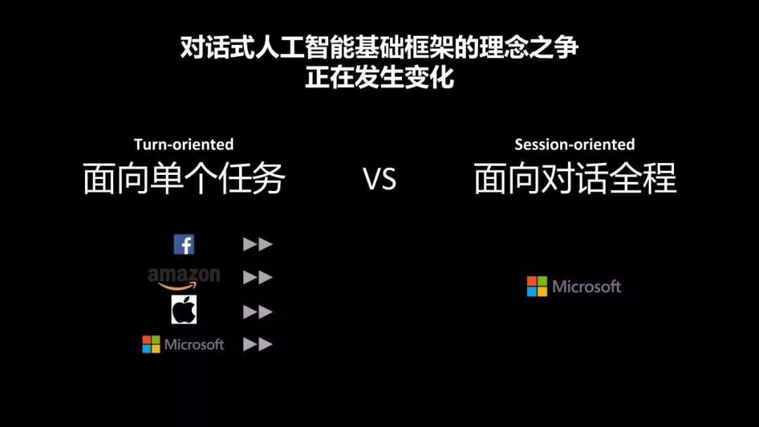 如果熟悉微软小冰的人可能会知道,我们从2014年就开始在做一个对话的机器人,在对话过程中我们别发现事实上以前很多的助手它都会看中于说我面向单个任务,比如说我去召唤起一个机器人,我就是为了完成一件事,比如说我要定一个餐,或者说我就要查一下今天北京的天气,这是传统像Siri,也包括像微软自己的Cortana它所面向的一个AI。但是作为一个真正的AI,通过微软小冰的探索我们越来越相信它其实应该像你身边的一个普通人,一个朋友一样,它是一个全程的对话。当我们的对话中可能穿插着很多很多的议题,可能会天马行空,我跟你对话的目的是说话,是交流的本身,而不仅仅是为了完成某一个任务,这才是真正我们认为对于我们的未来有意义的一个人工智能。