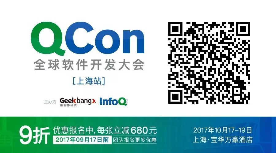 更多精彩技术专题请关注QCon全球软件开发大会,QCon上海站目前 8折优惠报名中,2017年09月17日前,立减680元,团购报名更多优惠~点击【阅读原文】跟技术大咖零距离。欲购票或咨询问题可联系购票经理 Hanna ,电话/微信:15110019061。