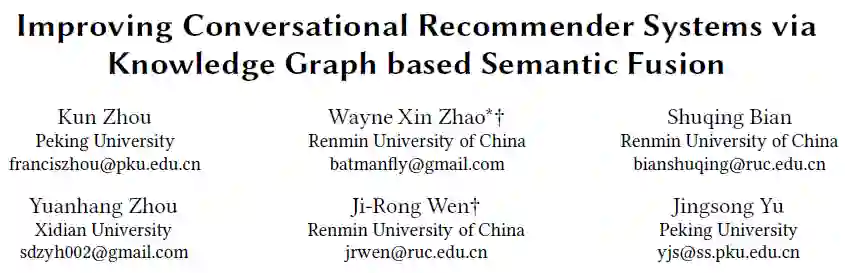 本文解读的是 KDD 2020 论文《Improving Conversational Recommender Systems via Knowledge Graph based Semantic Fusion》,作者来自北大、人大、西安电子科技大学。