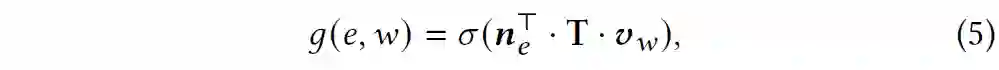 对于一个共现在一个会话中的item-word pair < , >,我们通过一个转换矩阵将他们的表示变得相近: