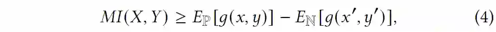 为了弥合word与item的语义鸿沟,本文提出了使用MIM[7]相互地增强成对信号的数据表示。给出两个变量 ,互信息(MI)被定义为: