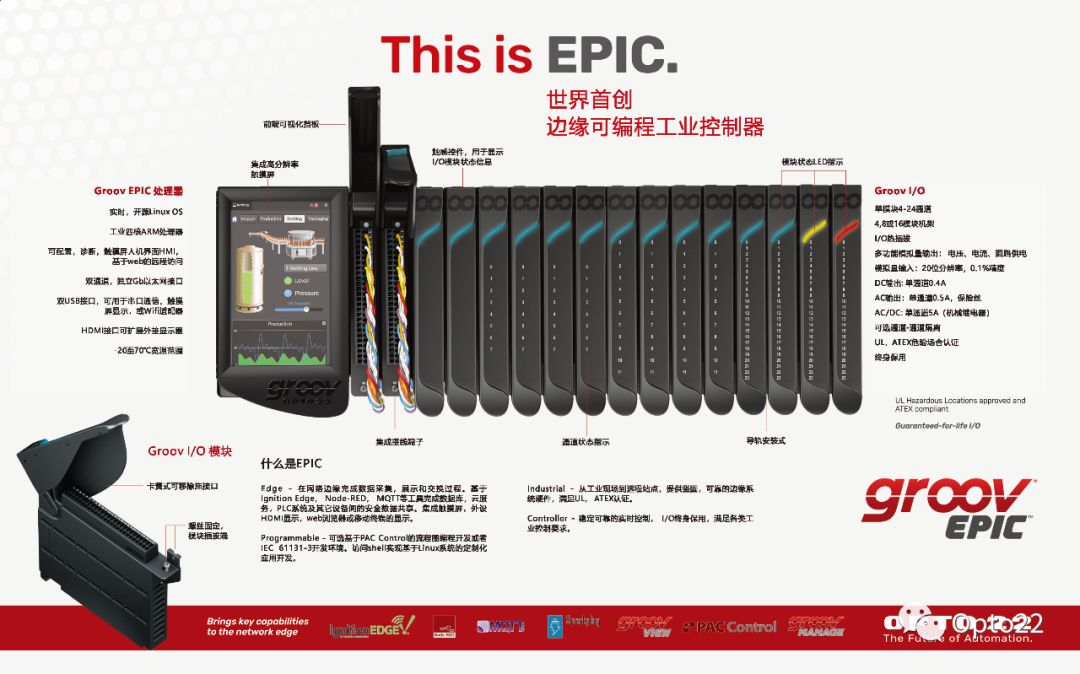该公司于2018年推出了groovEPIC®(边缘可编程工业控制器),因其可靠的工业I/ O而享誉全球。EPIC具有开源Linux®操作系统,除了实时控制外,还提供与PLC,软件和在线服务的连接,以及数据处理和可视化。