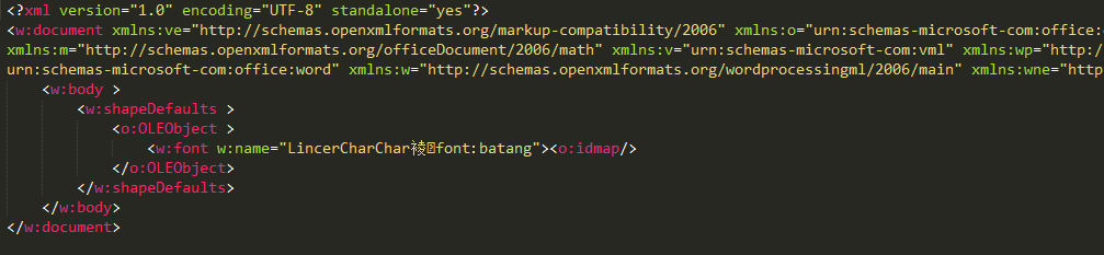 漏洞利用载荷本身为word/document.xml格式,如下所示: