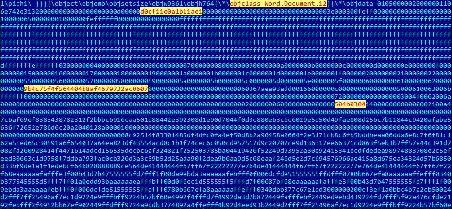 攻击者所使用的漏洞利用程序为一个RTF文档,其中包含一个DOCX文档,该文档利用Office Open XML解析器中存在的СVE-2017-11826漏洞。