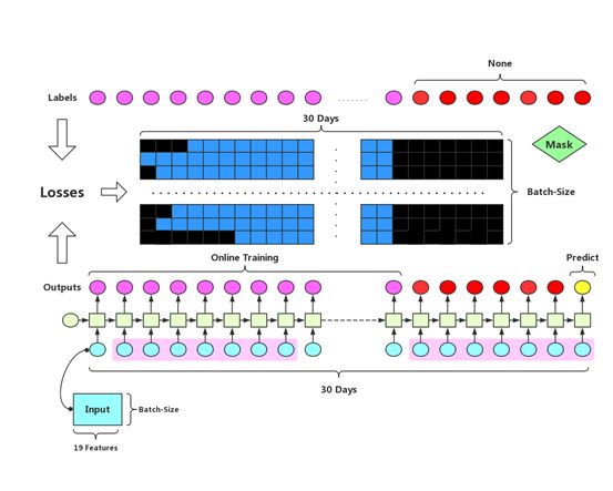 此次比赛主要使用了RNN模型。RNN分为三类:many-to-one、one-to-many、many-to-many。我们选择了many-to-many,这相当于对数据一天一天进行滑窗,可以对数据集进行扩充。
