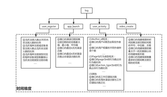 现在我们数据集划分确定了,用户也基本分析清楚了,就开始根据变长窗口的特点以及用户群的特性构造特征。特征构造方面我们主要从‘时间’ 和‘空间’维度的层面构造。