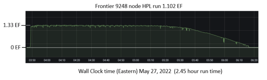 Frontier 的算力达到了 1.102 Exaflops(10^18),实现了每秒百亿亿次运算。