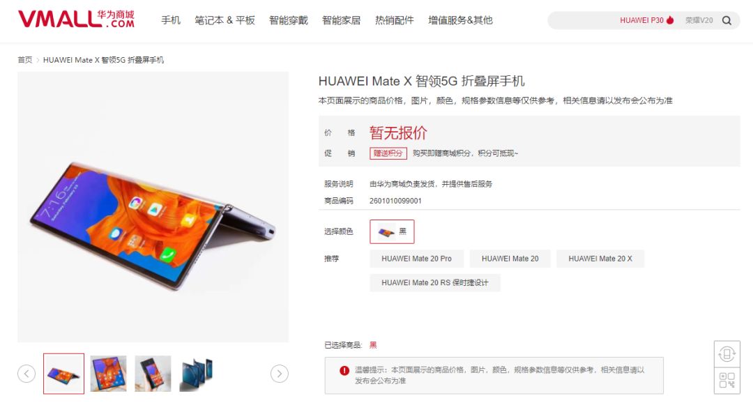 目前,华为折叠屏手机 Mate X 已经上架华为官方商城,根据此前发布上公布的信息,该机将于今年 6 月份开卖。华为 Mate X 采用可折叠全面屏设计,搭载麒麟980处理器,同时,它将是华为旗下首款可折叠手机和首款 5G 手机。
