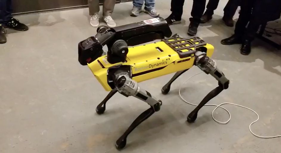不过,从视频上来看,这款涂着骚黄色外衣的机器人,更像是最新的Spot Mini,只不过增加了个脑袋。