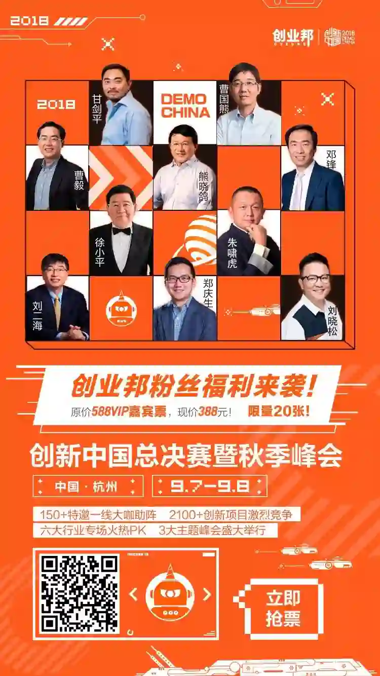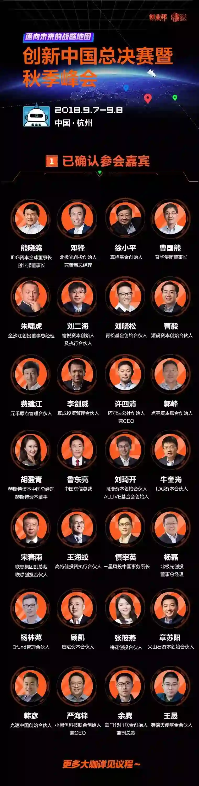 9月7日-8日,150+身价千亿的风投大佬:熊晓鸽、徐小平、邓锋、曹国熊……齐聚2018年创新中国秋季峰会,亲口为你揭秘资本流动背后的逻辑!揭秘不为人知的创业者秘籍!