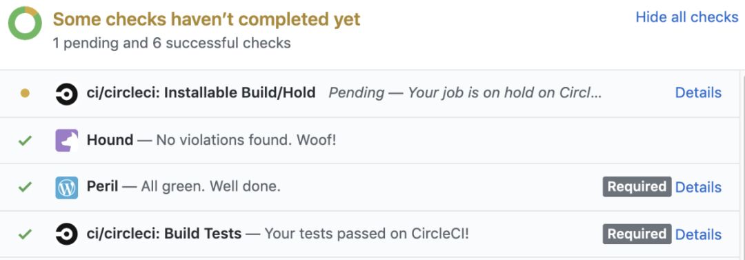 使用像 peril 和 hound 这样的自动化 code review 系统。Peril 可以检查代码更改,并根据预先配置的设置,标记警告和构建失败。例如,如果数据库迁移文件缺少 statement_timeout 或包含不必要的 DEFAULT NULL,则 pull request 可能失败。你可以编写许多这样的检查和特定于团队的规则,并让 Peril 成为更改的“看门人”。HoundCI 可以做类似的事情,而且规则是完全可配置的。