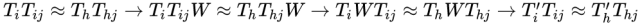 但是选择哪类函数呢?Hinton 的答案是多重线性函数(矩阵),因为这能够使得它们的关系不受视角变换(设视角变换为矩阵 W)影响,这是因为