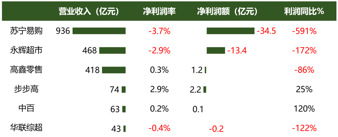 图1:国内典型零售上市公司业绩,2021H1