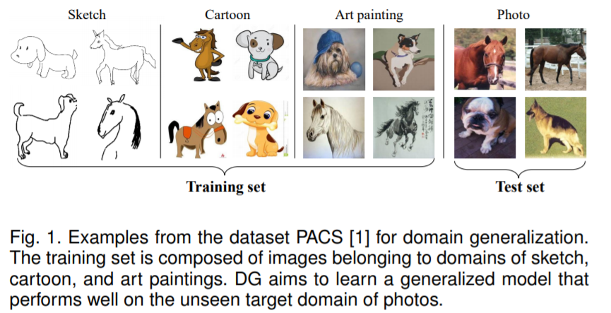 例如,在下图中,DA 问题假定训练集和测试集都可以在训练过程中被访问,而 DG 问题中则只有训练集。