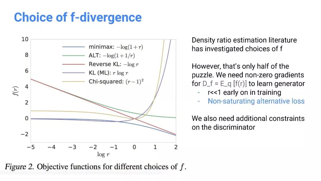 生成器loss有以下几种形式,例如:f-散度 D_f = E_q [f(r)]