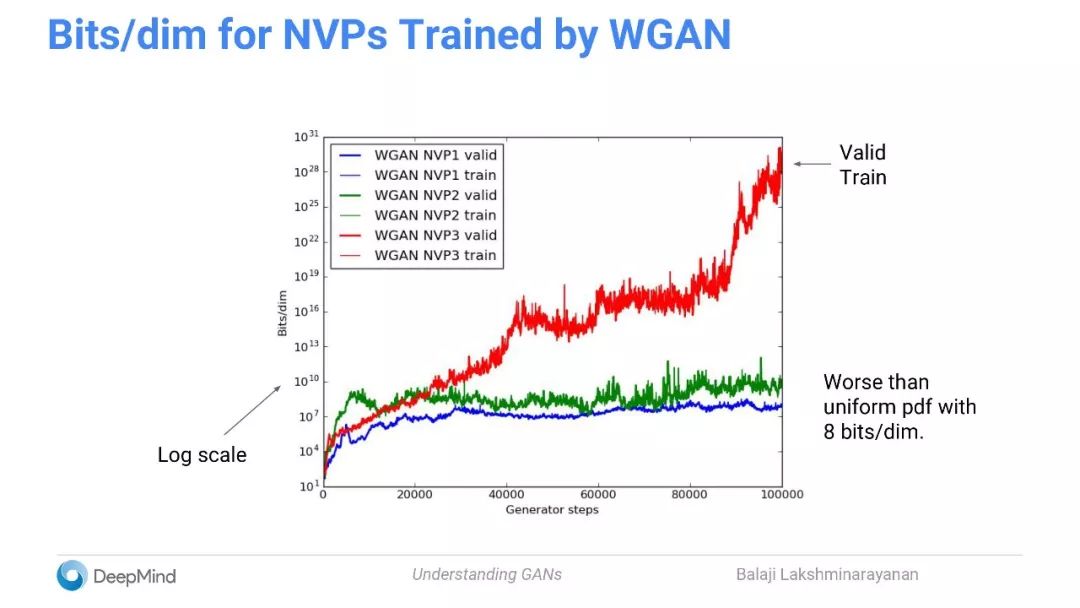 通过WGAN进行训练能得到更好的样本,但对数概率显著更差。