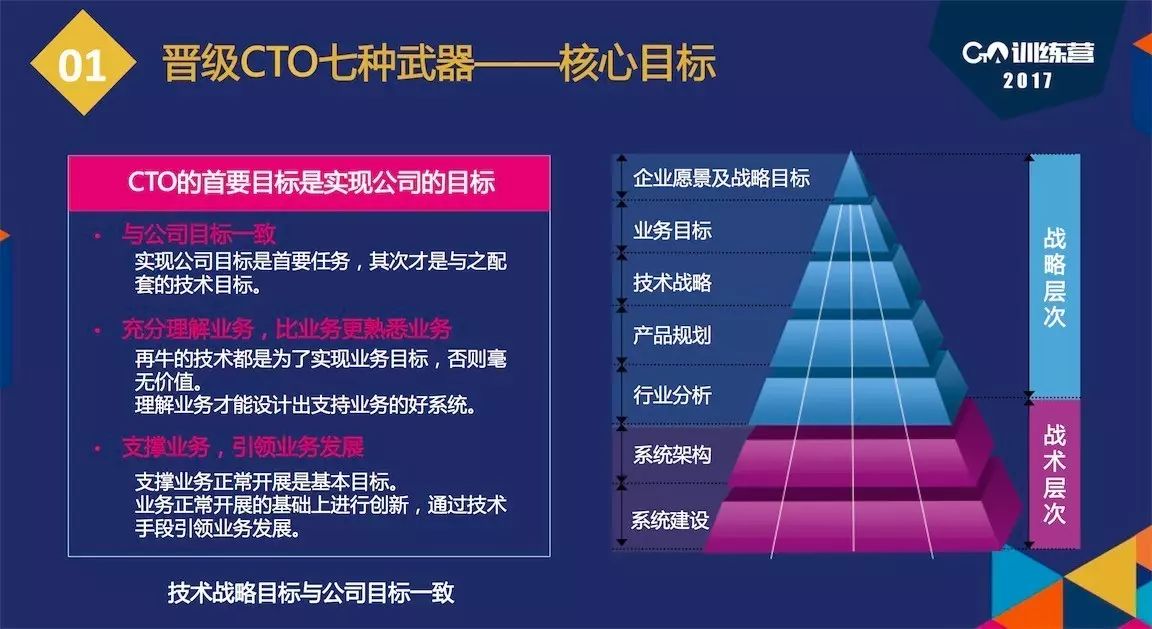作为 CTO,要时刻明确公司目标,实现公司目标是首要任务。其次才是与之配套的技术目标。
