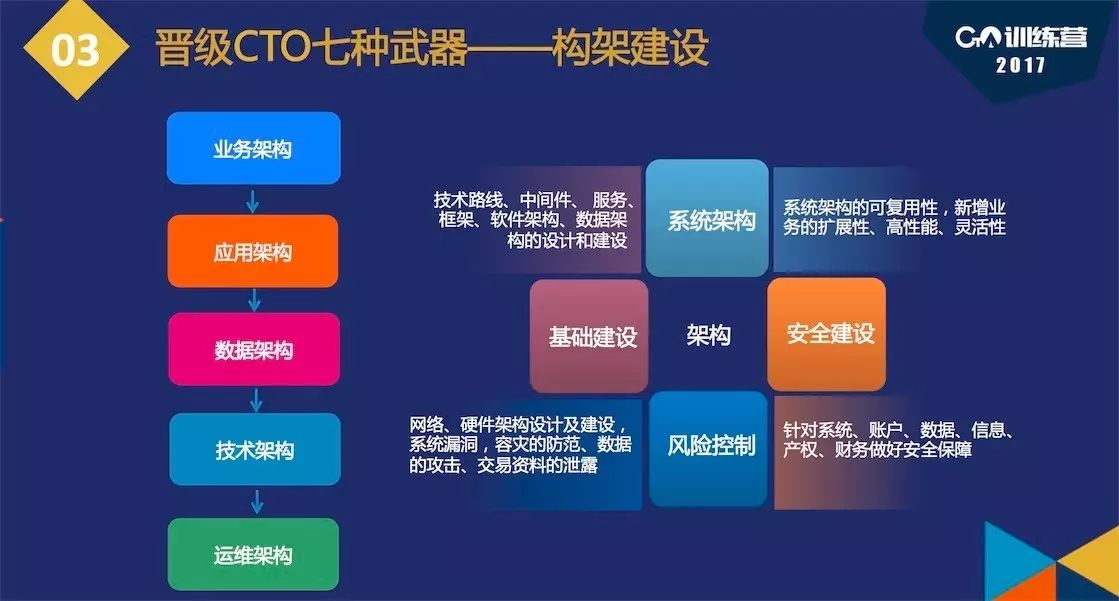 从业务、应用、数据、到技术、再到运维整个贯穿下来,就是做 CTO 应该有的视点,切记不是仅仅做单一的技术架构,那是架构师或研发主管应该做的事情。