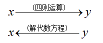 现在来考虑四则运算的逆运算,也就是从y求出x。例如当y=2时,x等于多少呢?这个计算就是