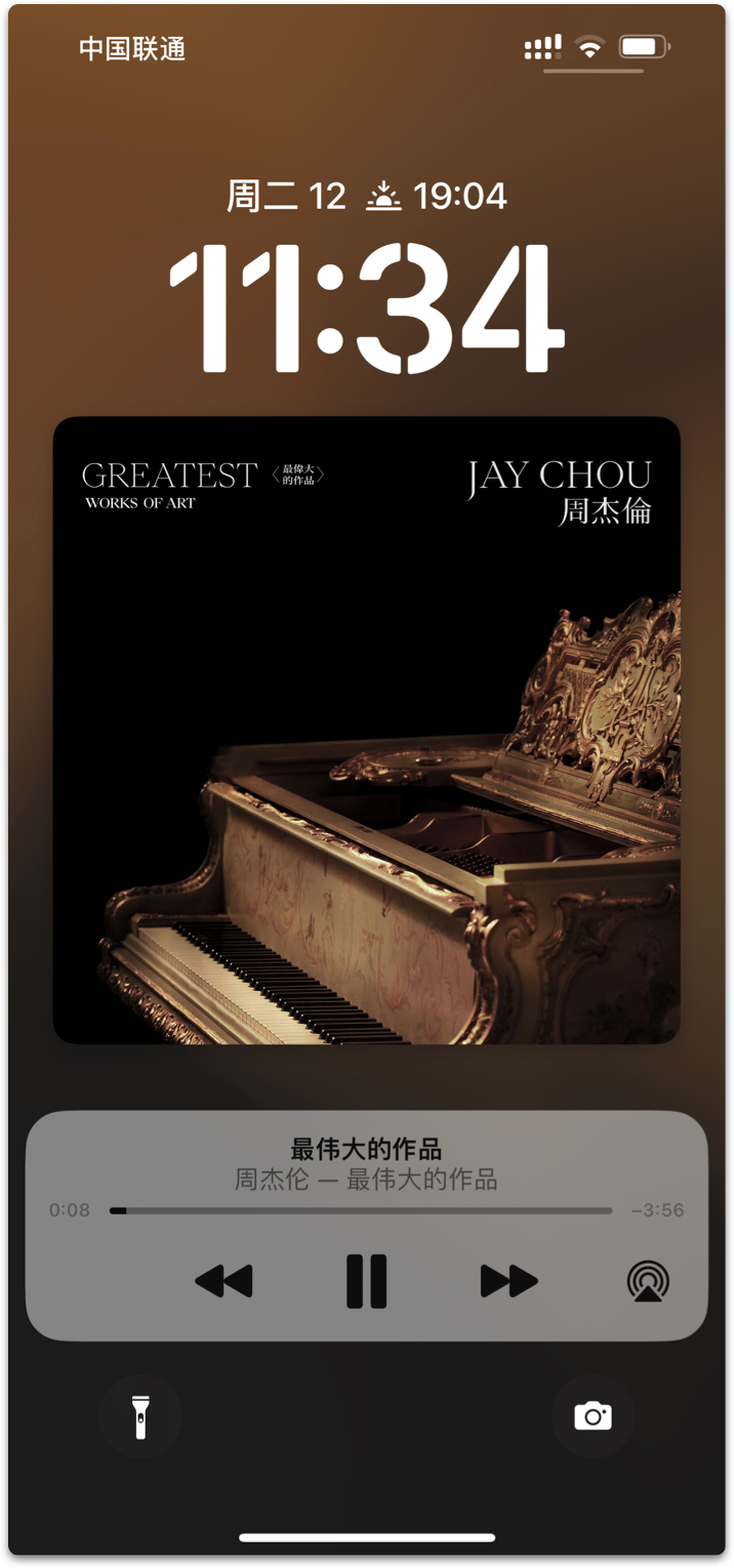 在播放 Apple Music 音乐时,iOS 16 现在会在锁屏界面上显示大尺寸的音乐专辑海报。
