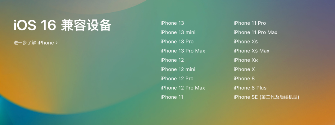 据 Apple 官网提供的信息,iOS 16 支持 iPhone 8 / 8 Plus (2017 年) 以及之后推出的产品: