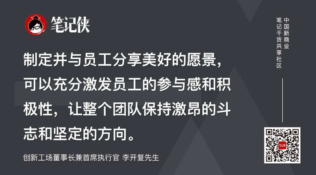 这表明,制定并与员工分享美好的愿景,可以充分激发员工的参与感和积极性,可以让整个团队保持激昂的斗志和坚定的方向,是领导艺术的重要组成部分。