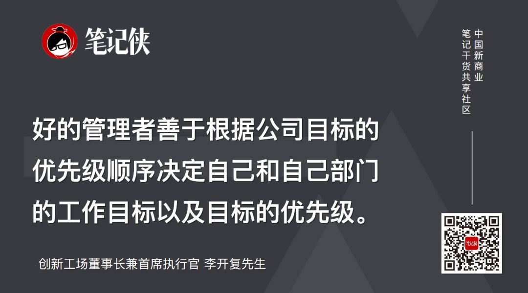 好的管理者善于根据公司目标的优先级顺序决定自己和自己部门的工作目标以及目标的优先级。