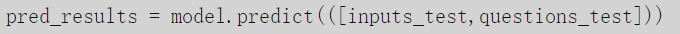 如前所述,这些结果是一个数组,它的每个位置是词汇表中每个单词的概率,这些概率就是问题的答案。如果我们查看这个数组的第一个元素,我们将看到一个词汇量大小的向量,除了对应答案的单词位置,向量中的元素几乎都是0。