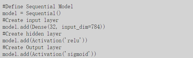 使用Keras,我们可以创建表示不同的层,也可以轻松定义这些数学运算和层中的节点数。这些不同的层用一行代码就能创建完成。
