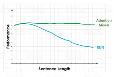 下图显示了当我们增加了输入句子的长度时,RNN与Attention模型的性能变化。当面对一个很长的句子,并要求执行一项特定的任务时,RNN在处理完所有句子之后可能已经忘记了它所拥有的第一个输入。
