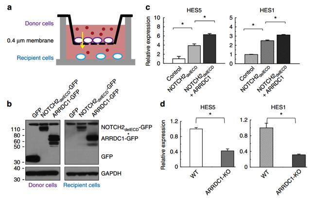 参考文献:Qiyu Wang, Quan Lu. Plasma membrane-derived extracellular microvesicles mediate non-canonical intercellular NOTCH signaling. Nature Communications 8, Article number: 709(2017) doi: 10.1038/s41467-017-00767-2