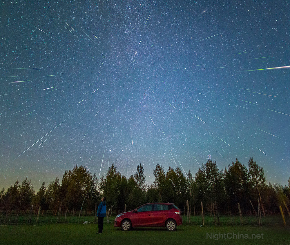 2016年的英仙座流星雨,由赵忠华拍摄,图片源自夜空中国。
