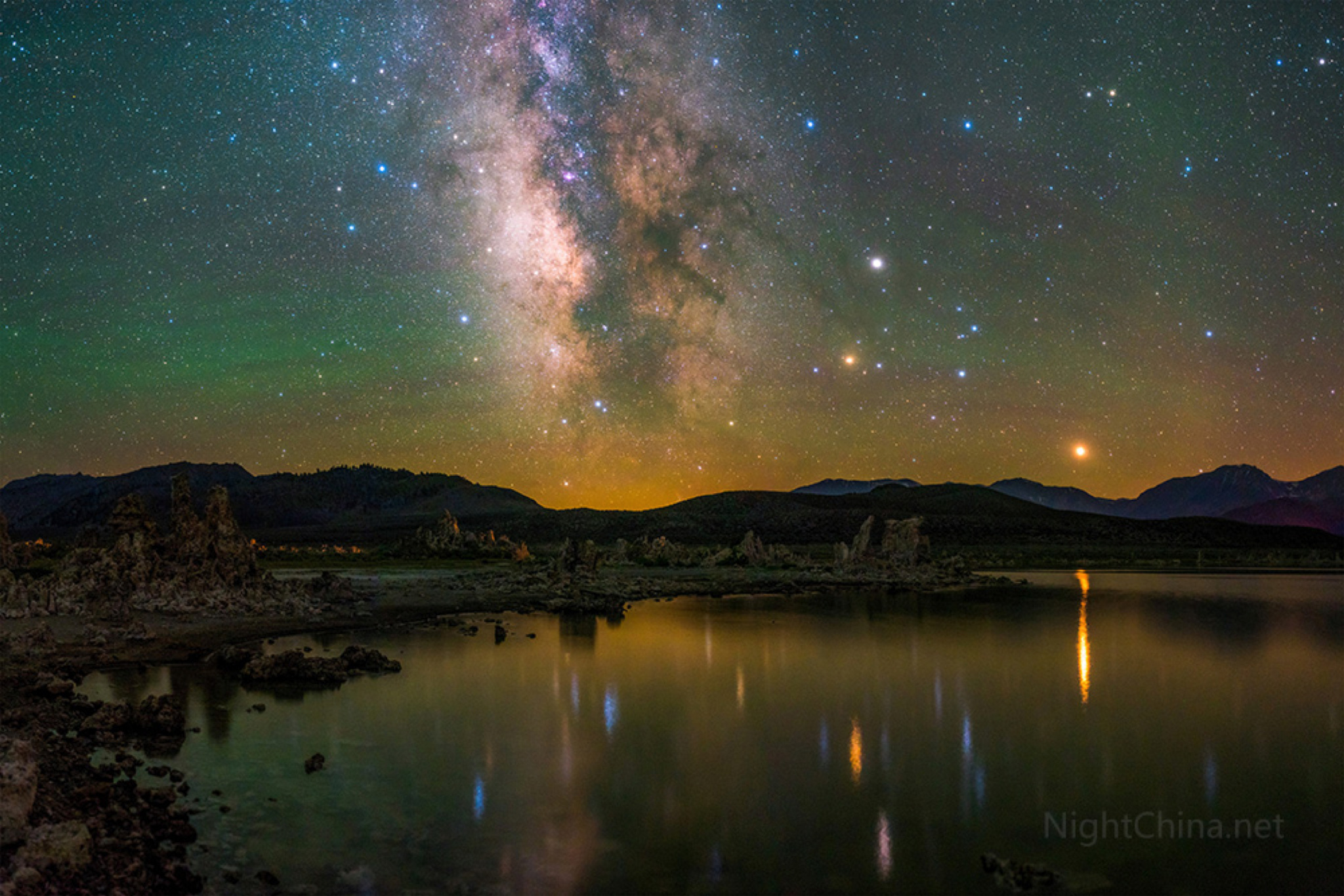 即将落下的红色亮星是2016年的火星,由王卓骁拍摄,图片源自夜空中国。