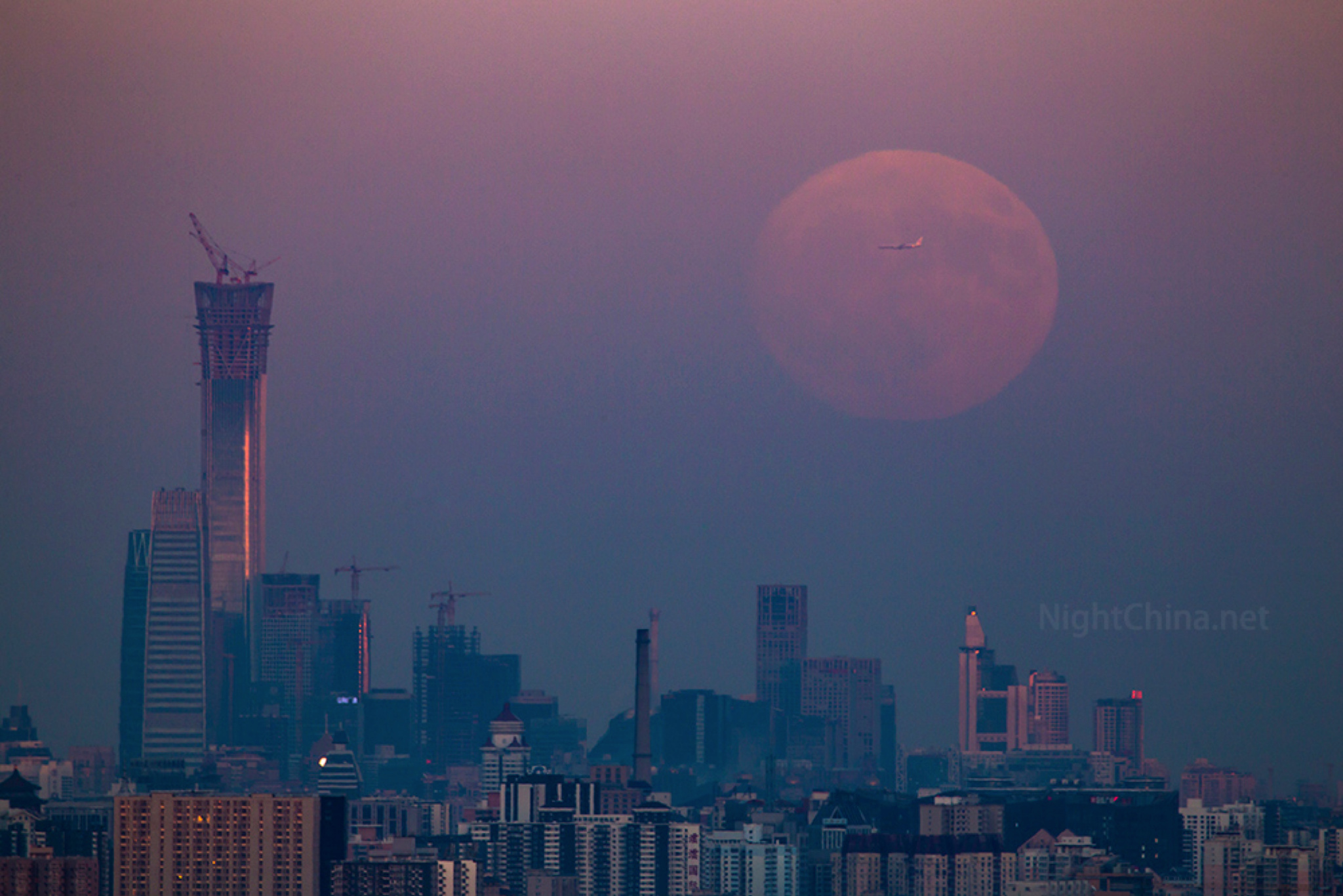 2017年11月3日的满月初升,由赵忠华拍摄,图片源自夜空中国。